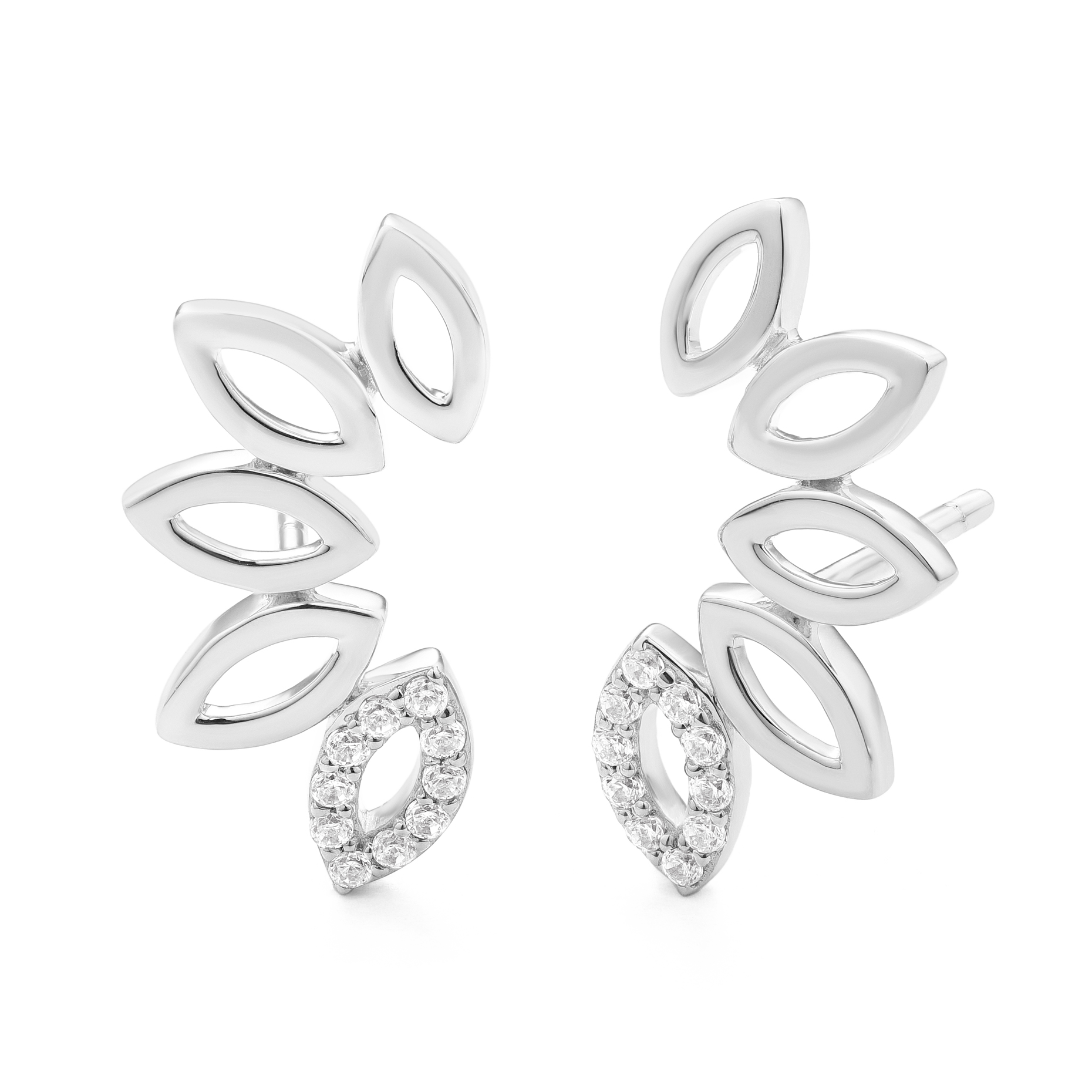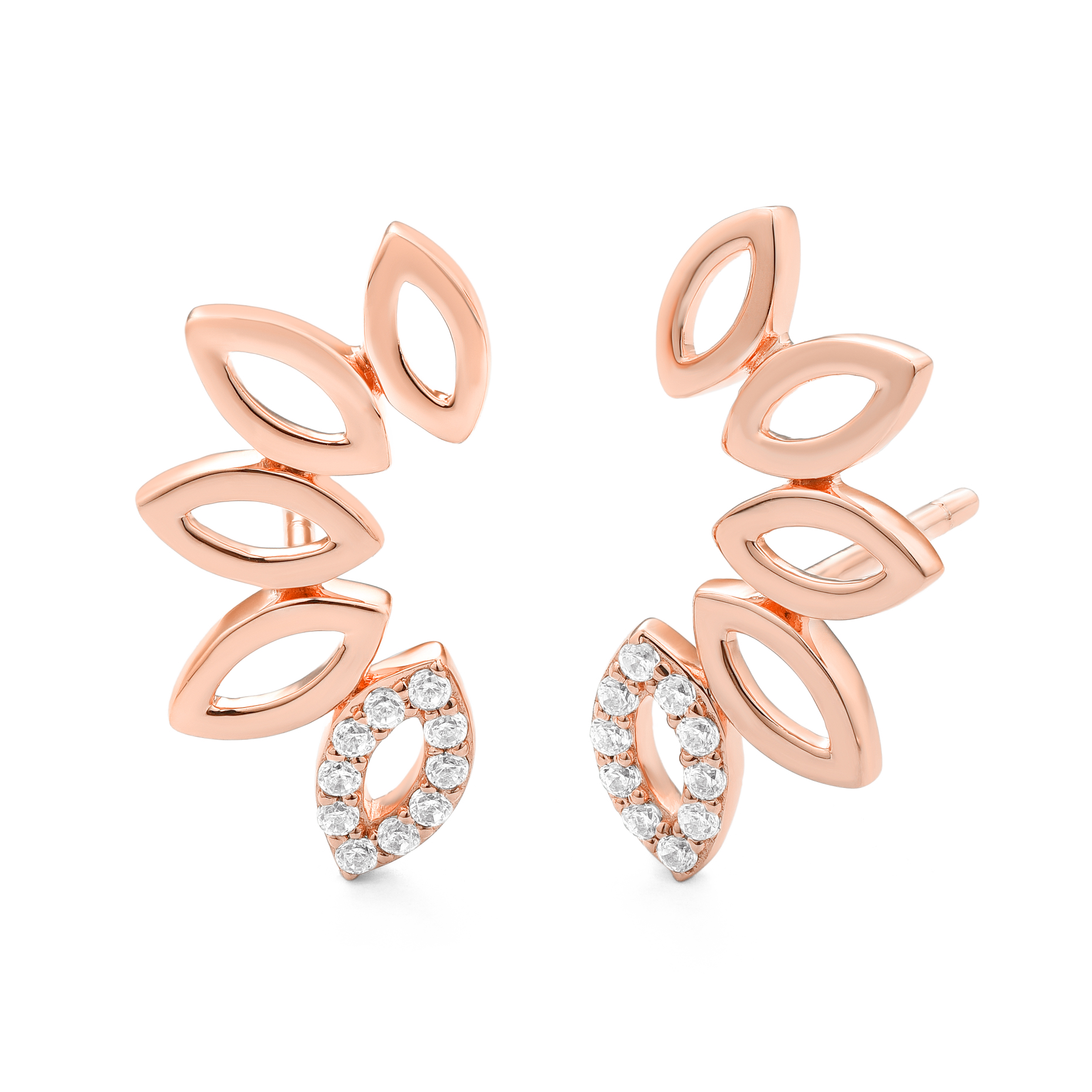 Collection Leaves and crossed Earring Gold, Diamond 0.20 ct, climbers