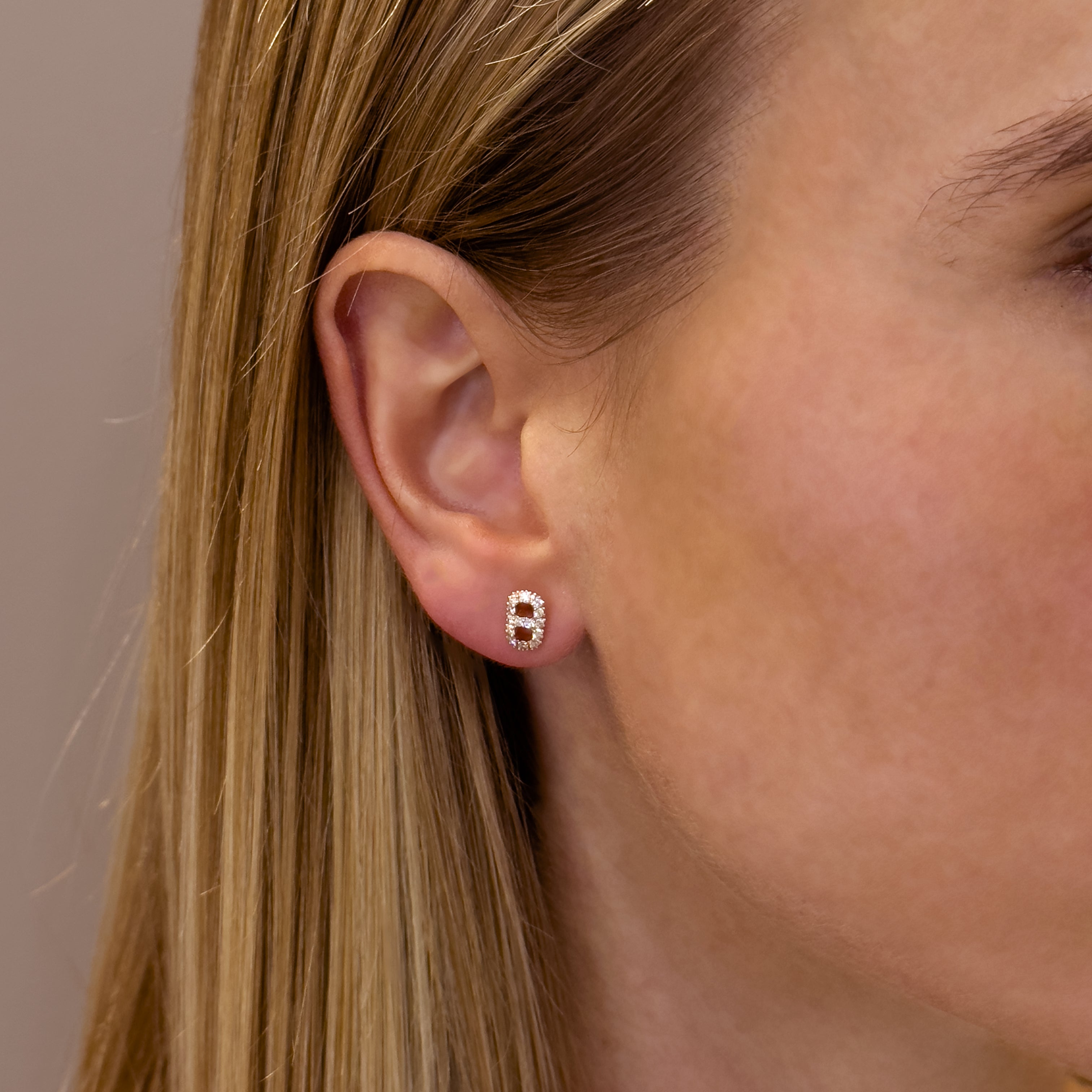 18K rose gold earring, diamond color GH, clarity SI 0.34 ct, 28 stones, pressure clasp