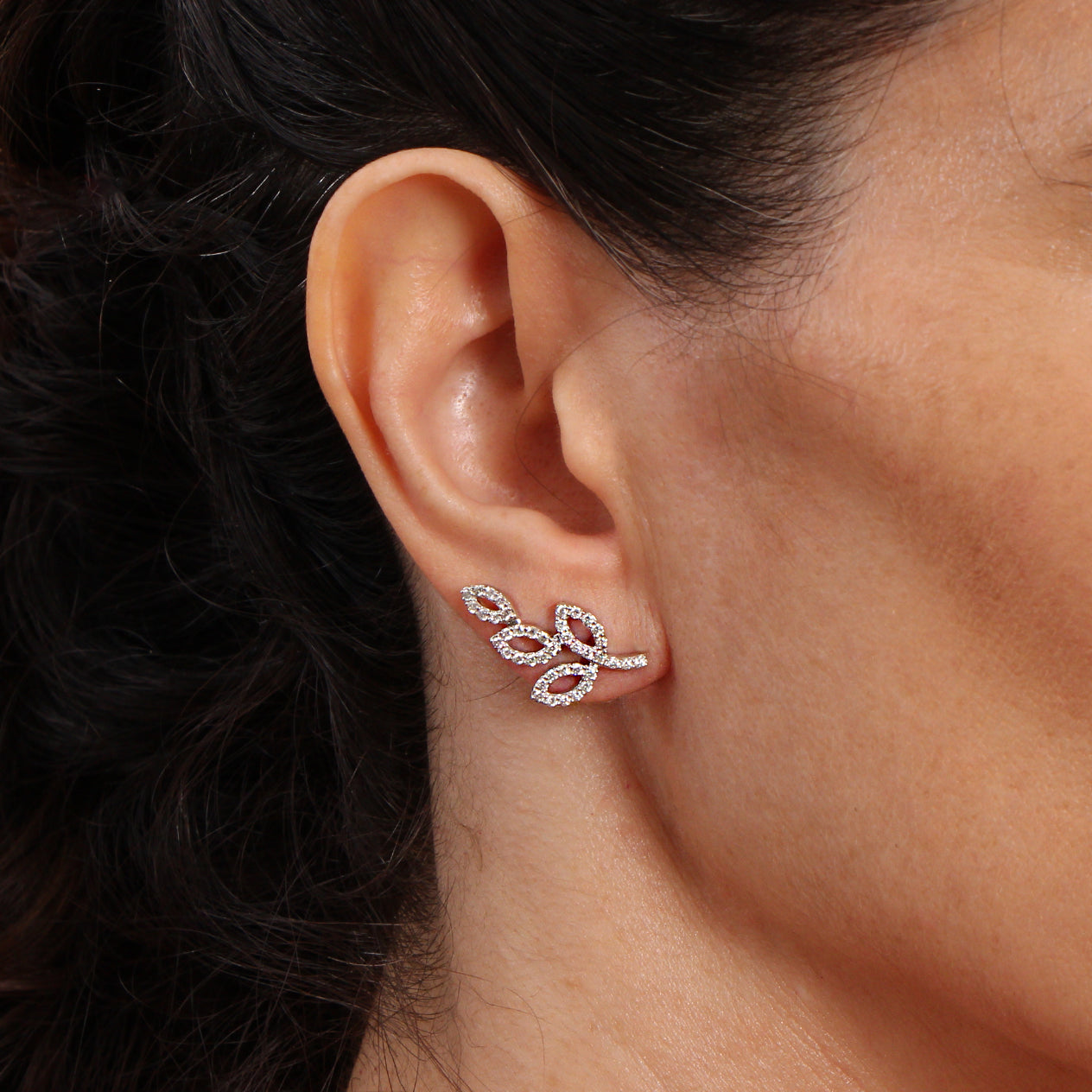 Collection Leaves and crossed Earring Gold, Diamond 0.70 ct, climbers