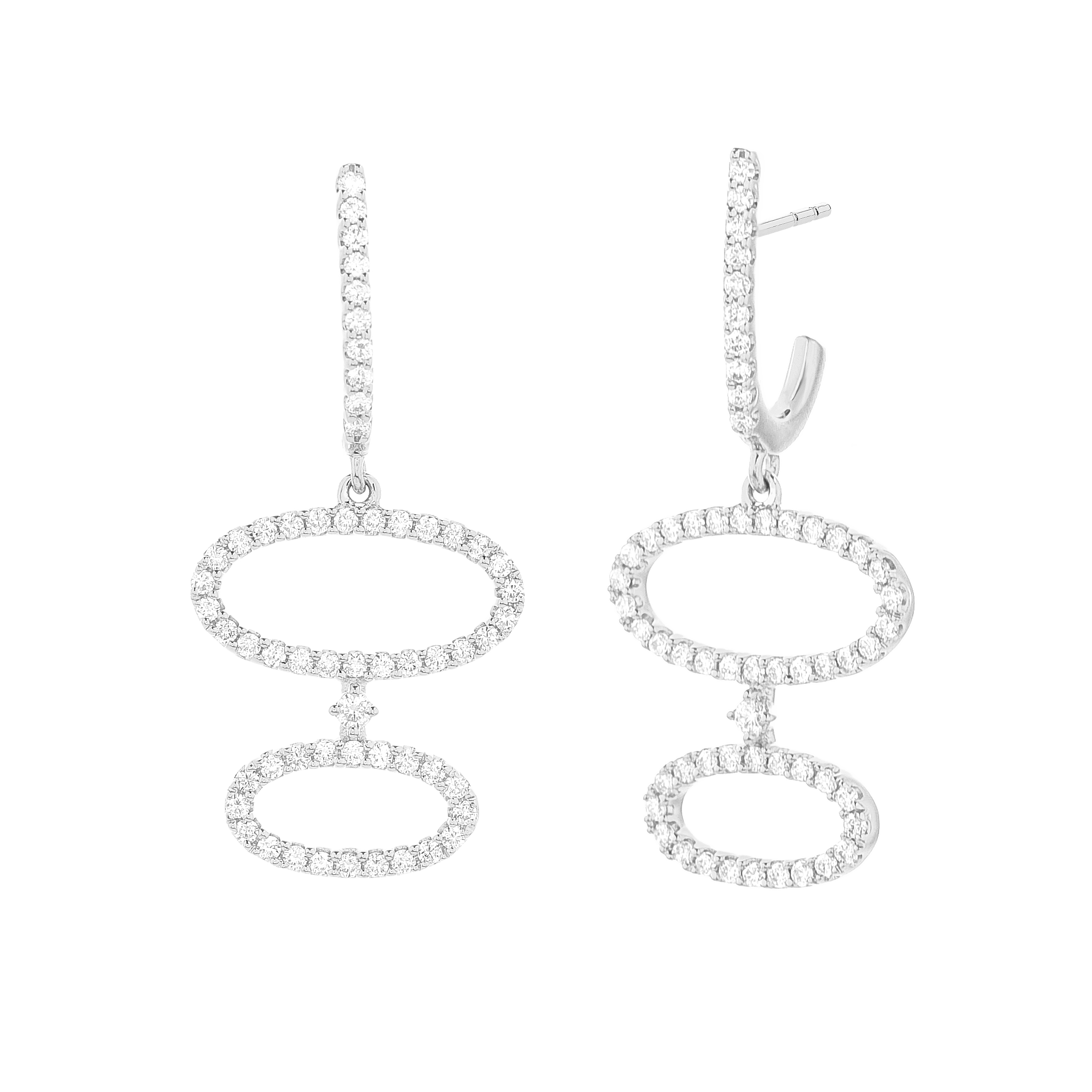 18K white gold earring, diamond color GH, clarity SI 0.81 ct, 116 stones, pressure clasp