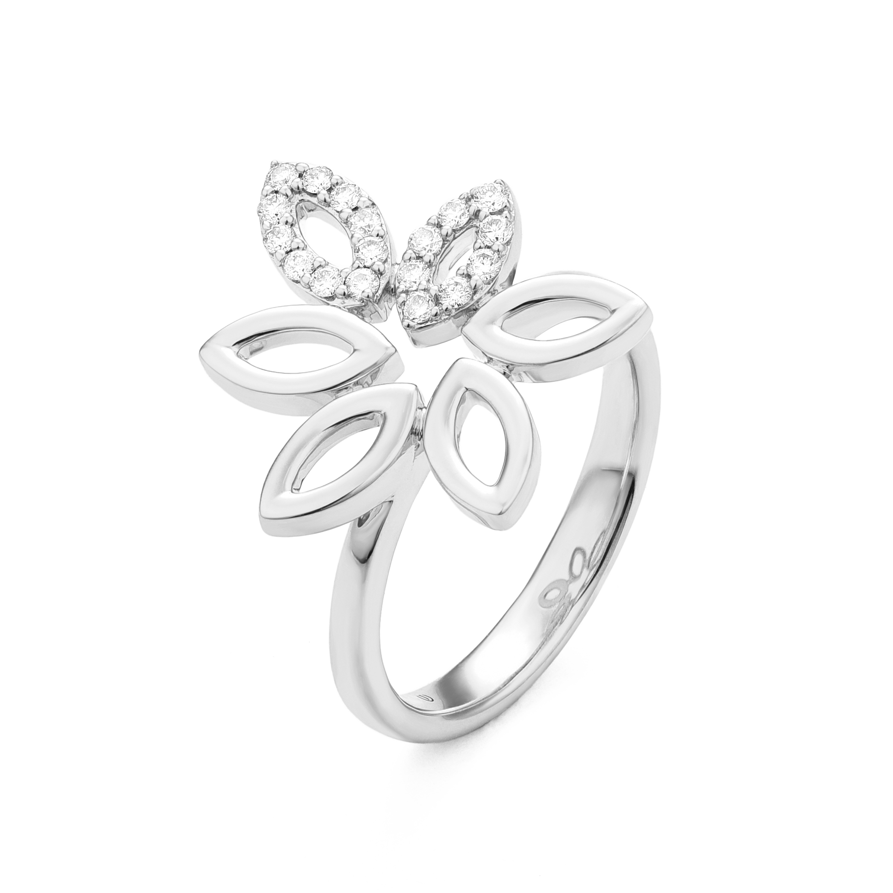 Collection Leaves and crossed Ring Gold, Diamond 0.21 ct, designer