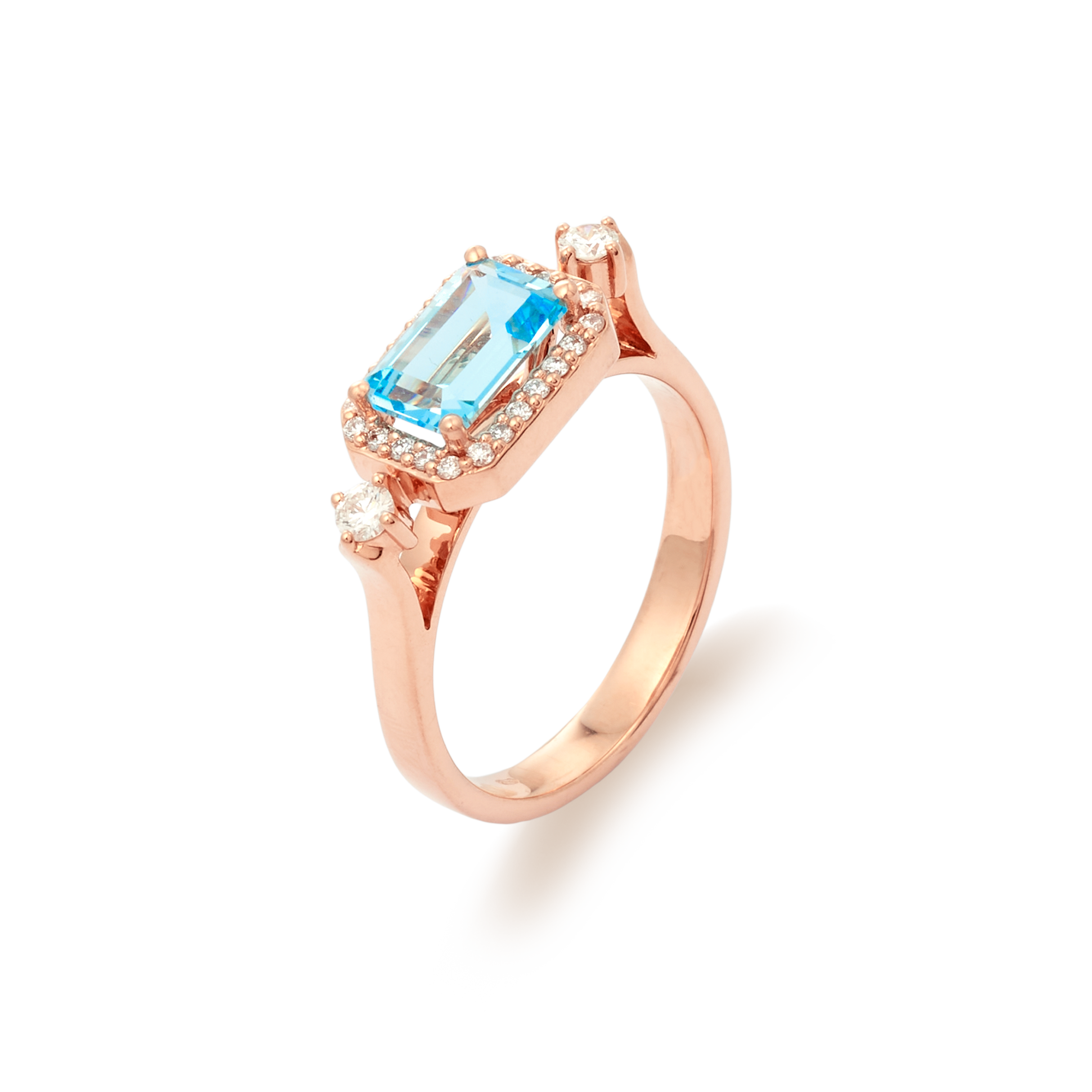 18K rose gold ring, diamond color GH, clarity SI 0.22 ct, 26 stones