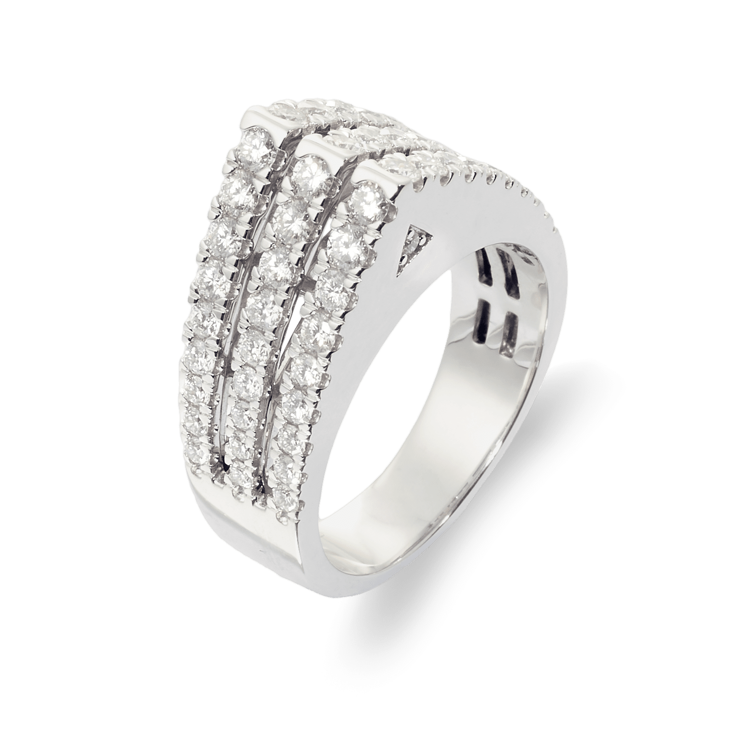 18K white gold ring, diamond color GH, clarity SI 1.33 ct, 56 stones