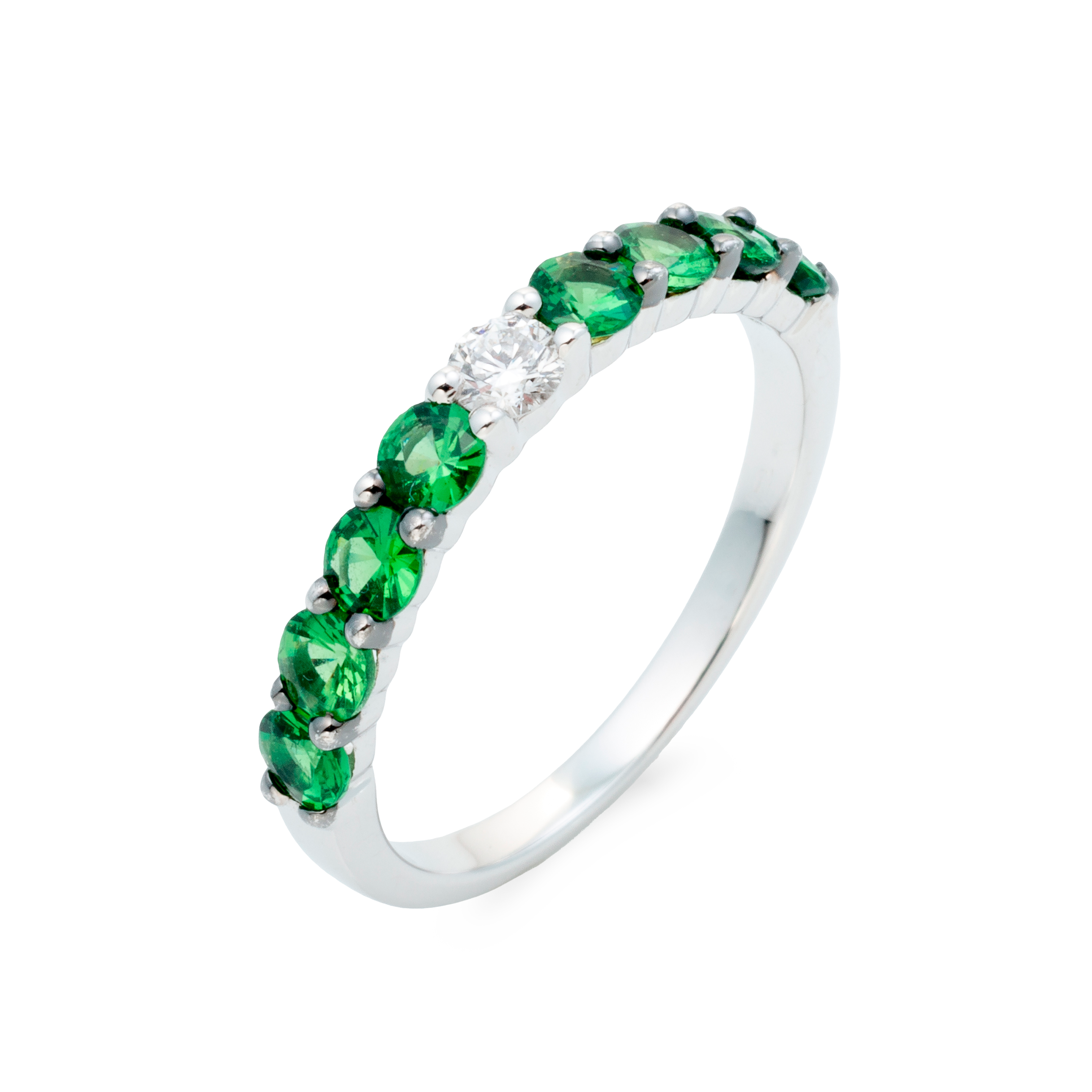 18K white gold ring, diamond color GH, clarity SI 0.11 ct, tsavorite, 1 stones