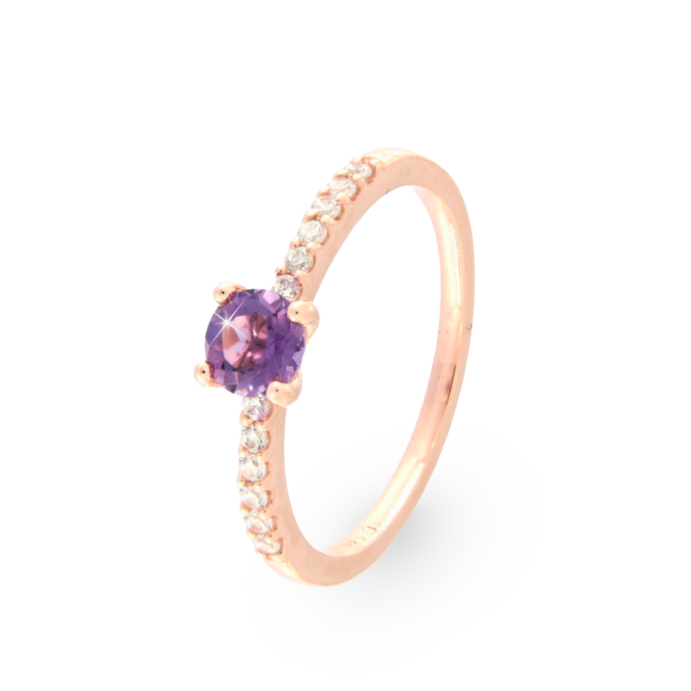18K rose gold ring, diamond color GH, clarity SI 0.15 ct, amethyst, 12 stones