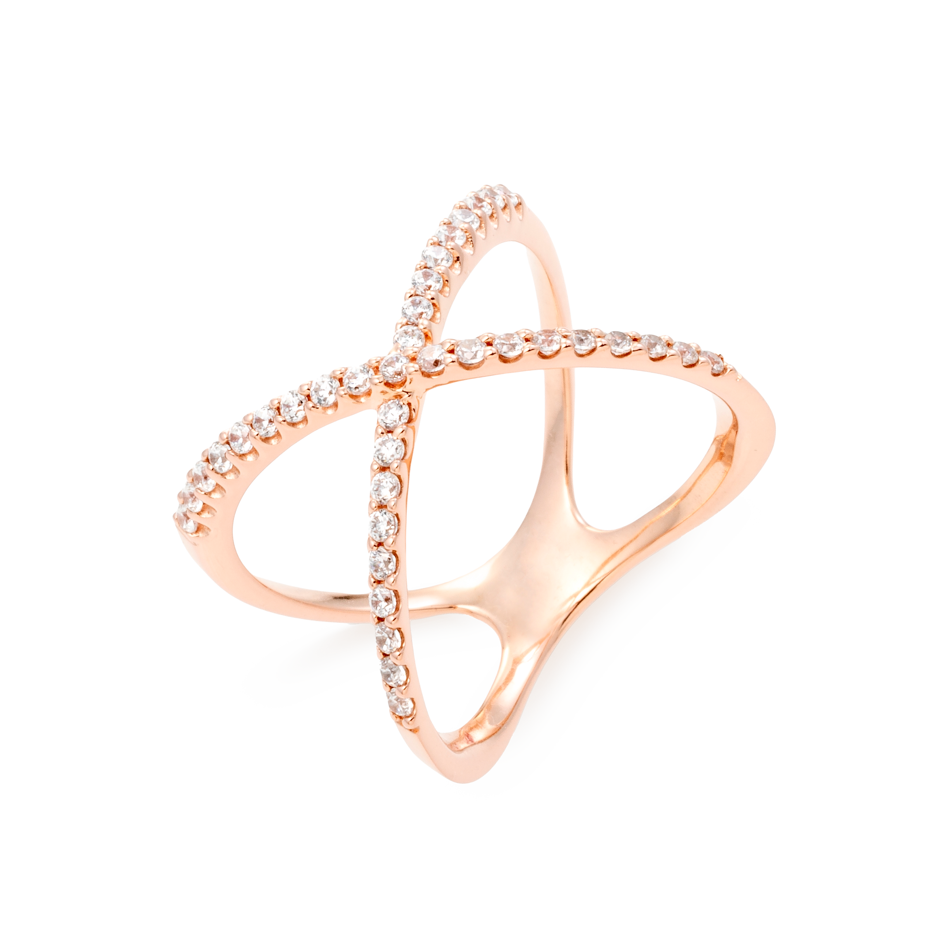 18K rose gold ring, diamond color GH, clarity SI 0.36 ct, 37 stones