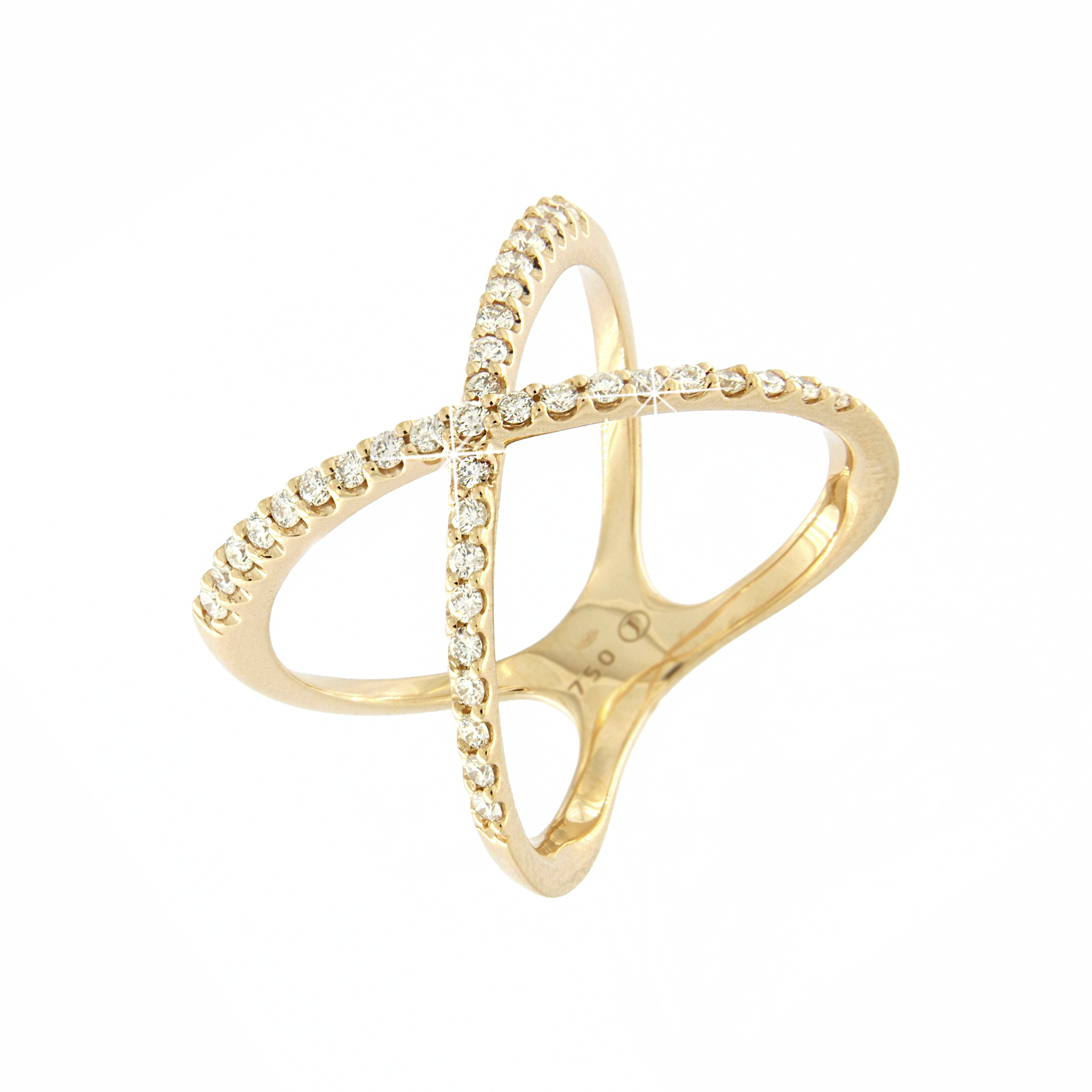 Collection Leaves and crossed Ring Gold, Diamond 0.36 ct, crosses