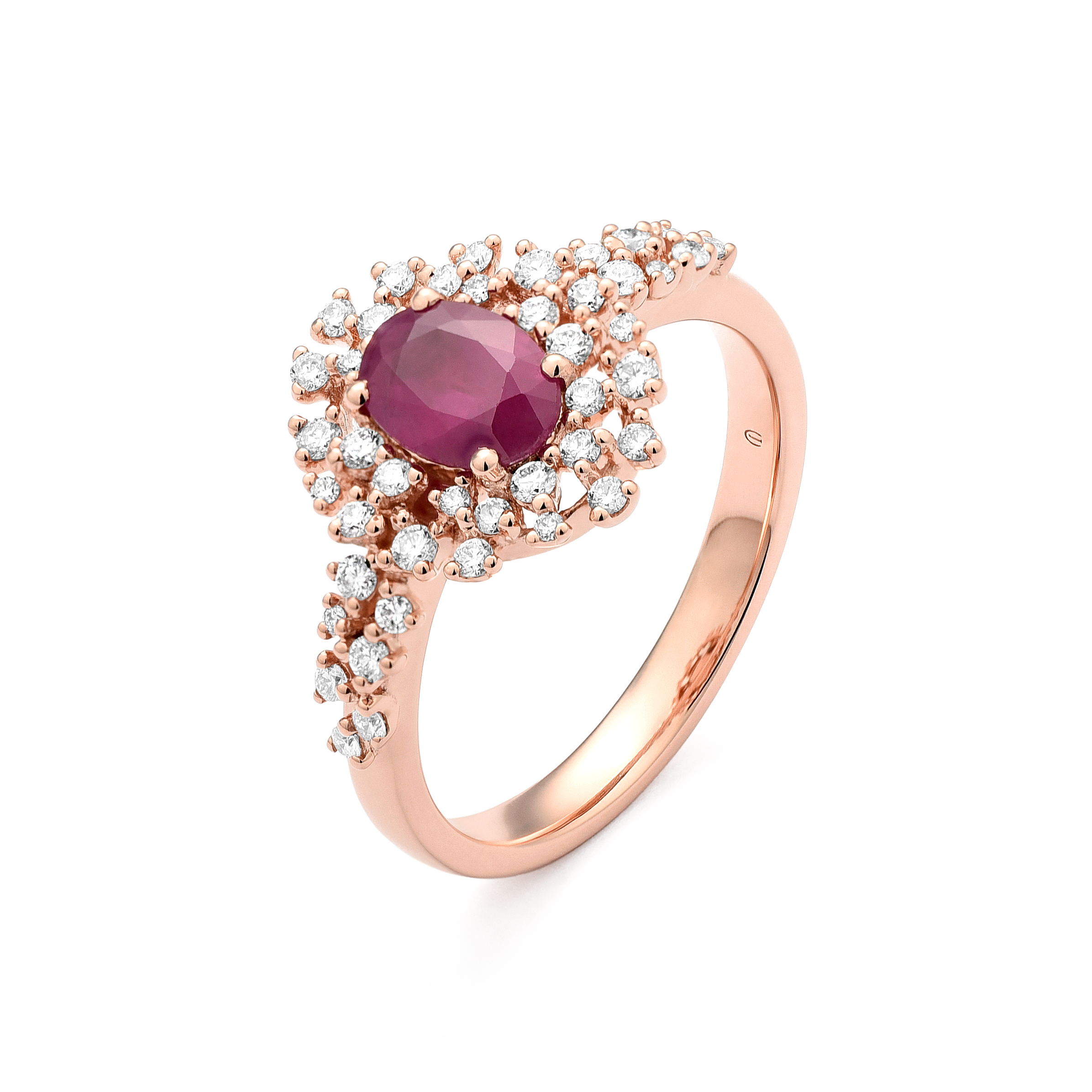 Collection Princess Ring Gold, Diamond 0.34 ct, ruby, halo