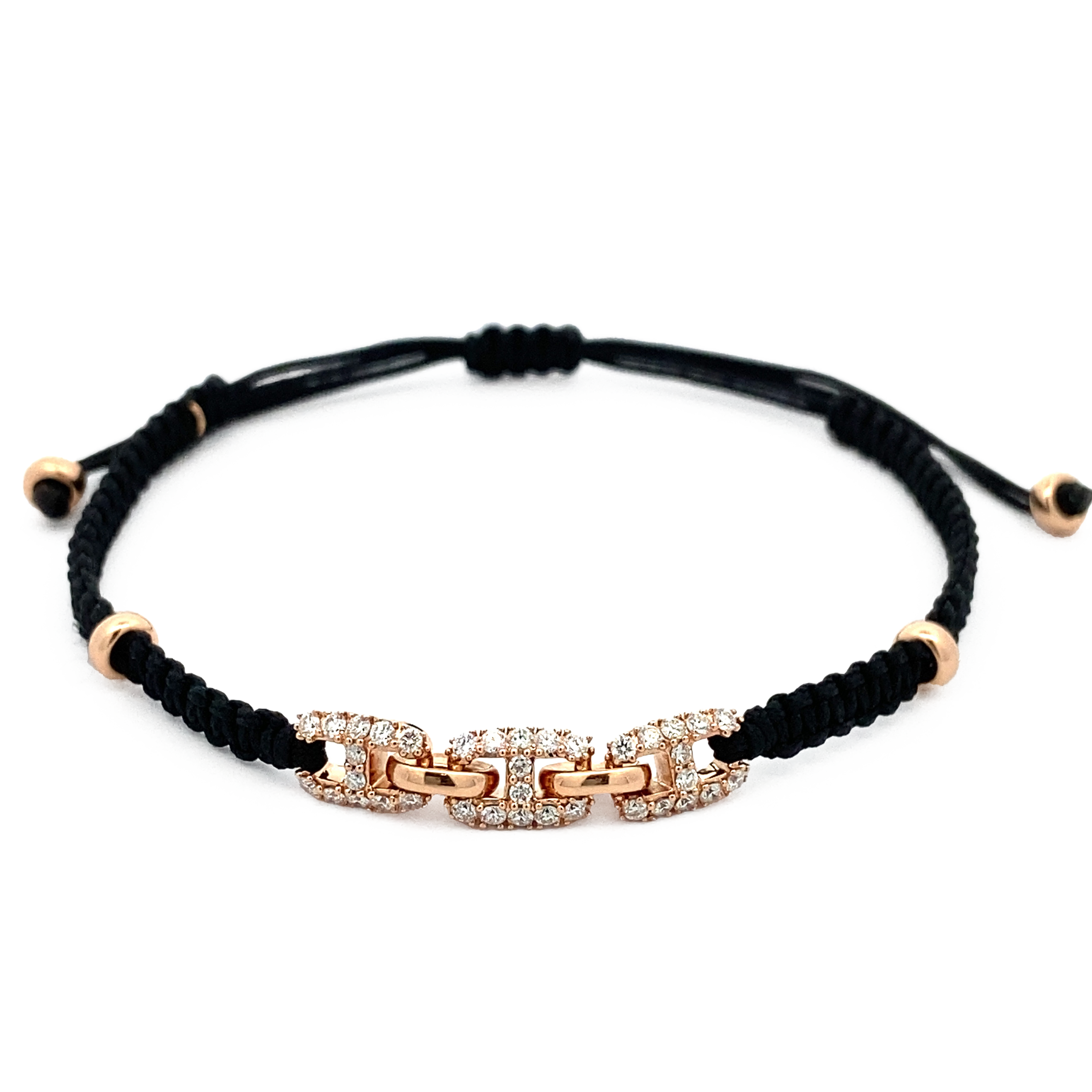 Pulsera oro rosa 18K, 36 piedras, triple eslabón diamantes, Cordón de nailon ajustable de 15cm a 25cm