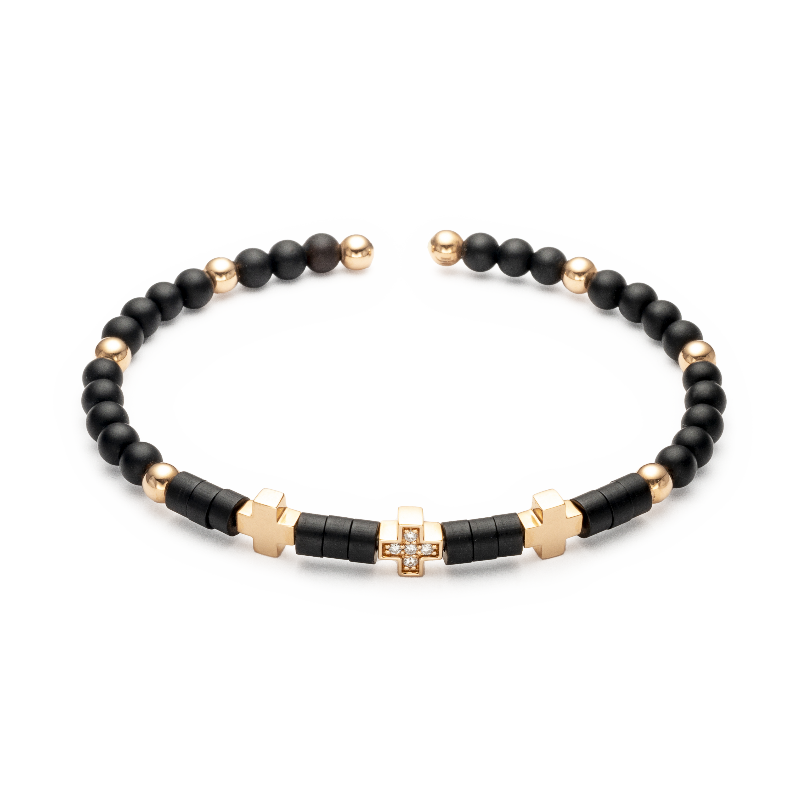 Pulsera oro rosa 18K, diamante color GH, claridad SI 0.05 ct, onix, 5 piedras, titanio talla M (16.0cm) bola 4mm