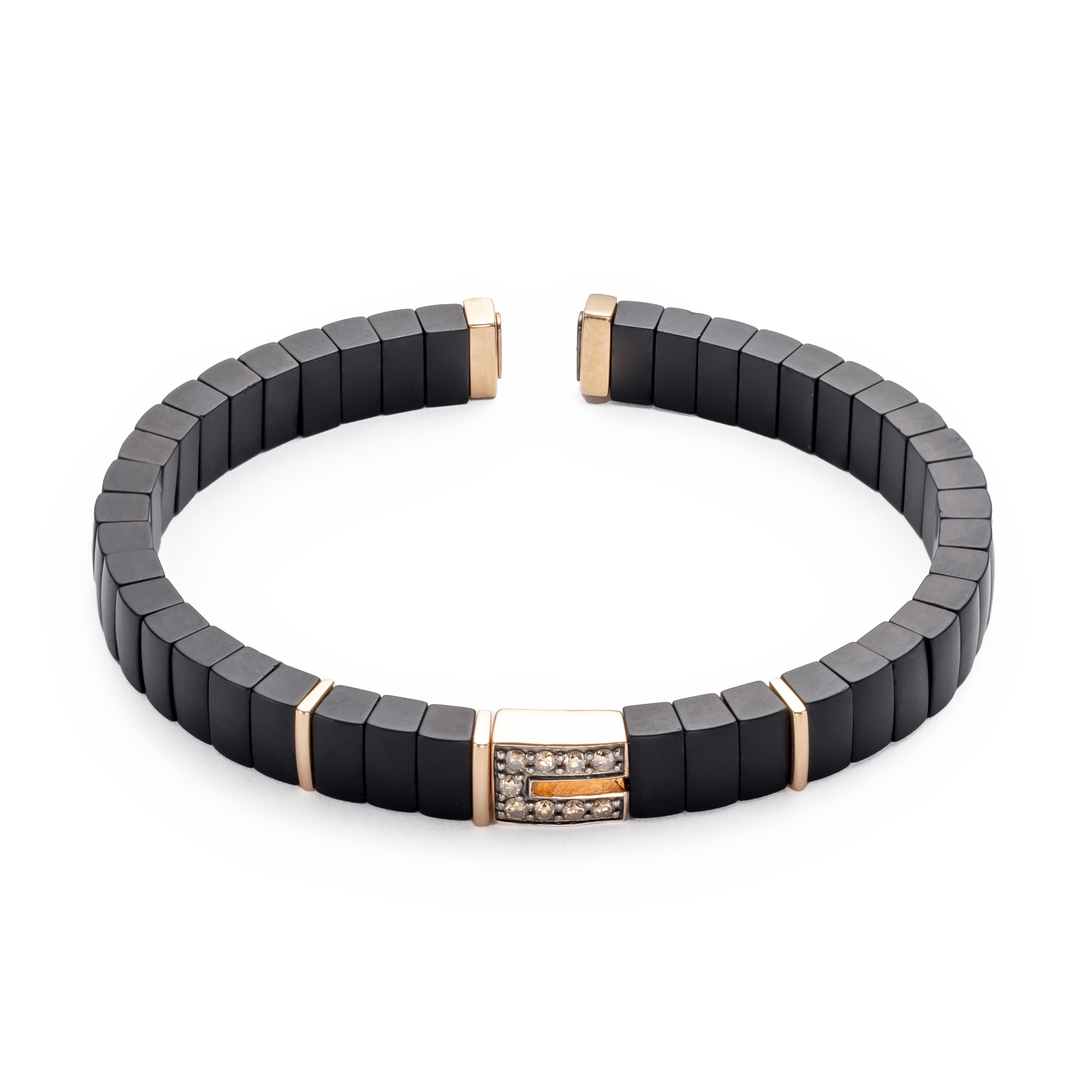 Pulsera oro rosa 18K, diamante brown 0.20 ct, onix, 9 piedras, titanio talla M (16.0cm)