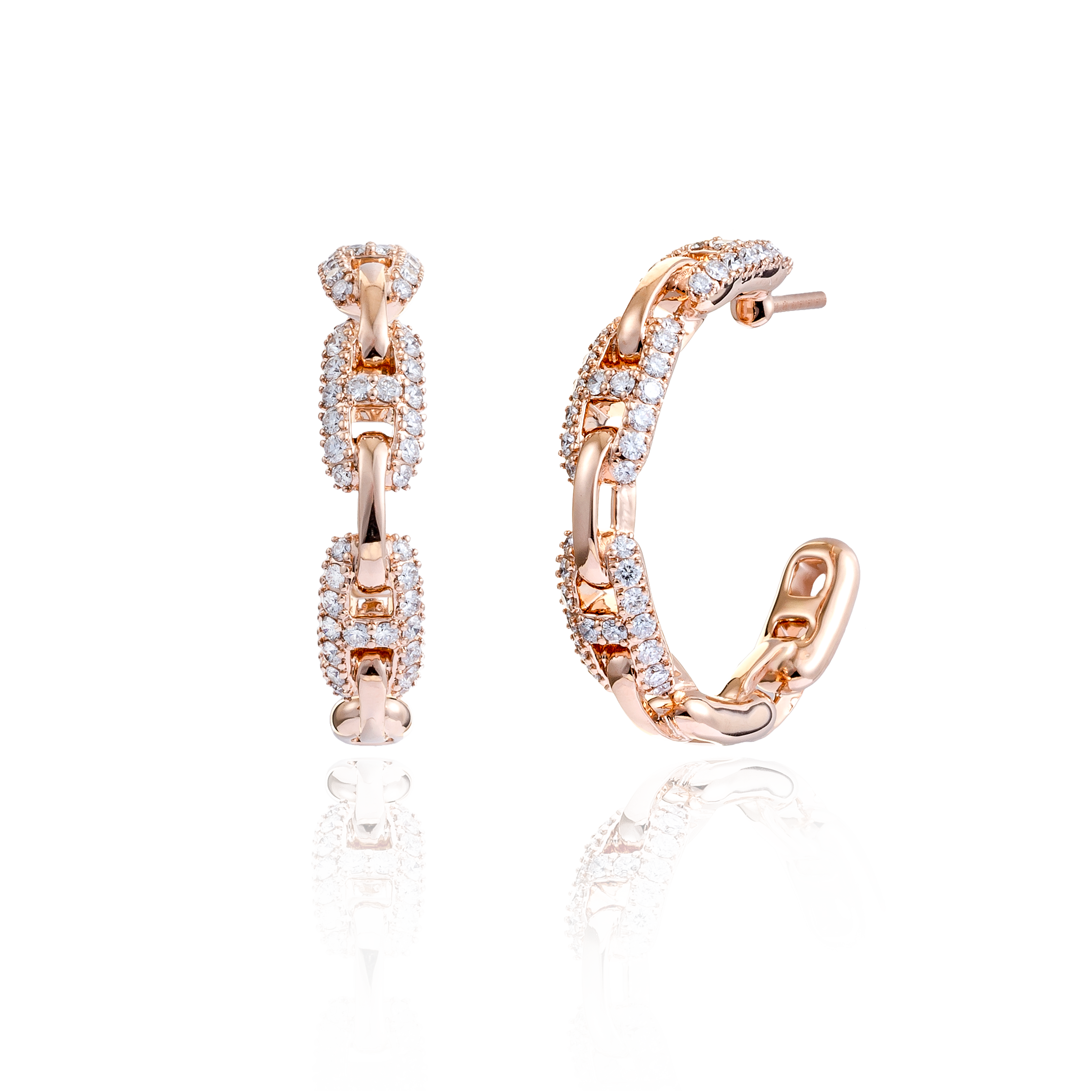 Pendientes oro rosa 18K, diamante color GH, claridad SI 1.07 ct, 98 piedras, cierre presión