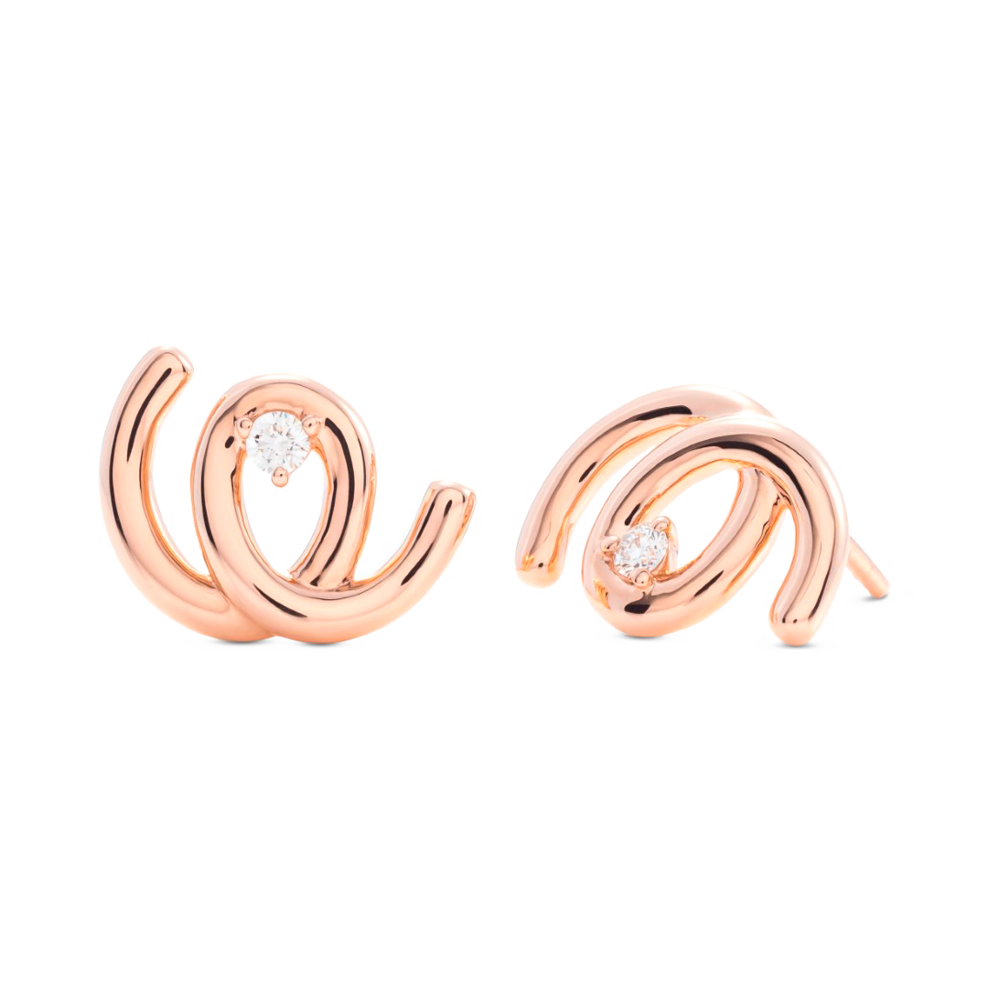 Pendientes oro rosa 18K, diamante color GH, claridad SI 0.08 ct, 2 piedras, cierre presión