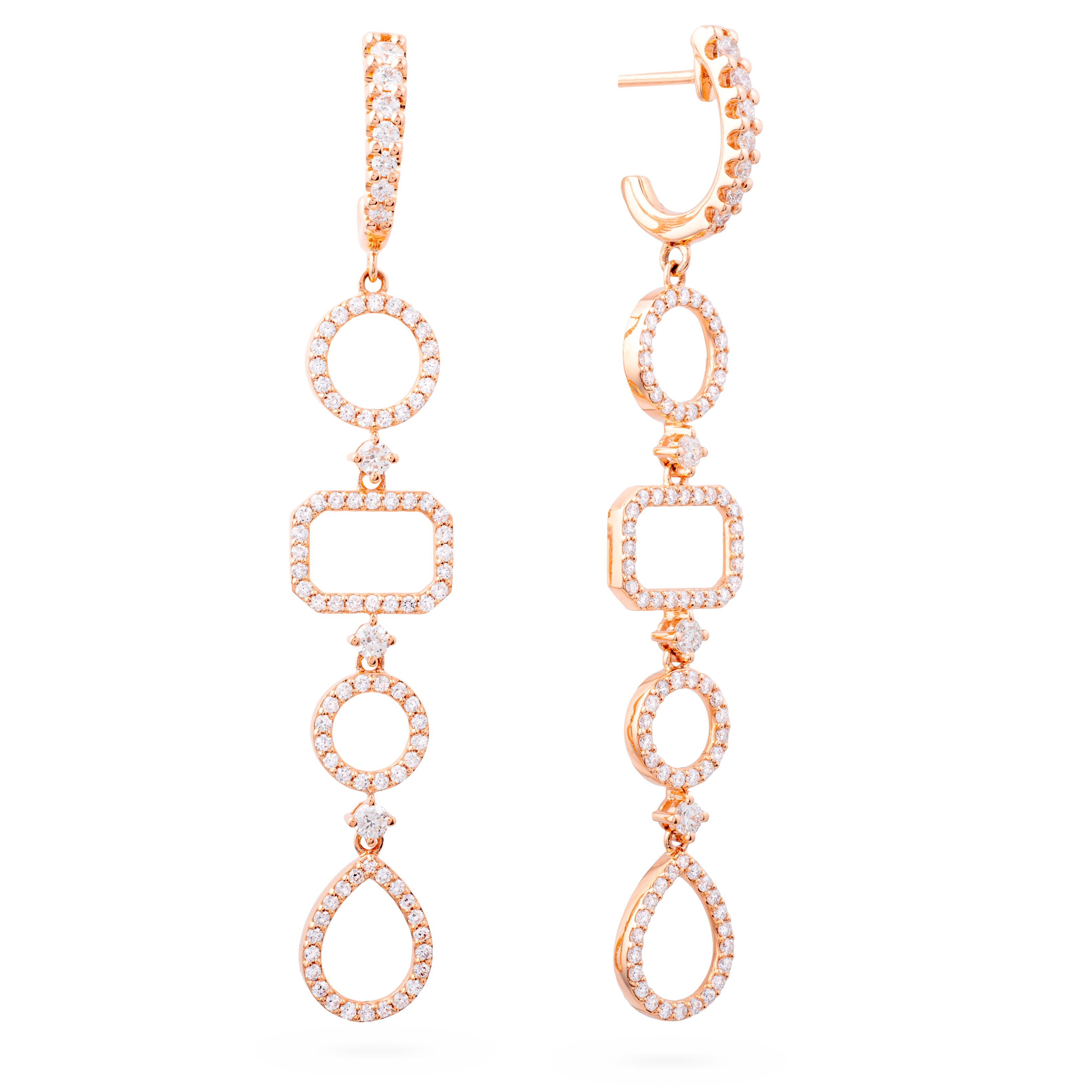 Pendientes oro rosa 18K, diamante color GH, claridad SI 1.33 ct, 182 piedras, cierre presión