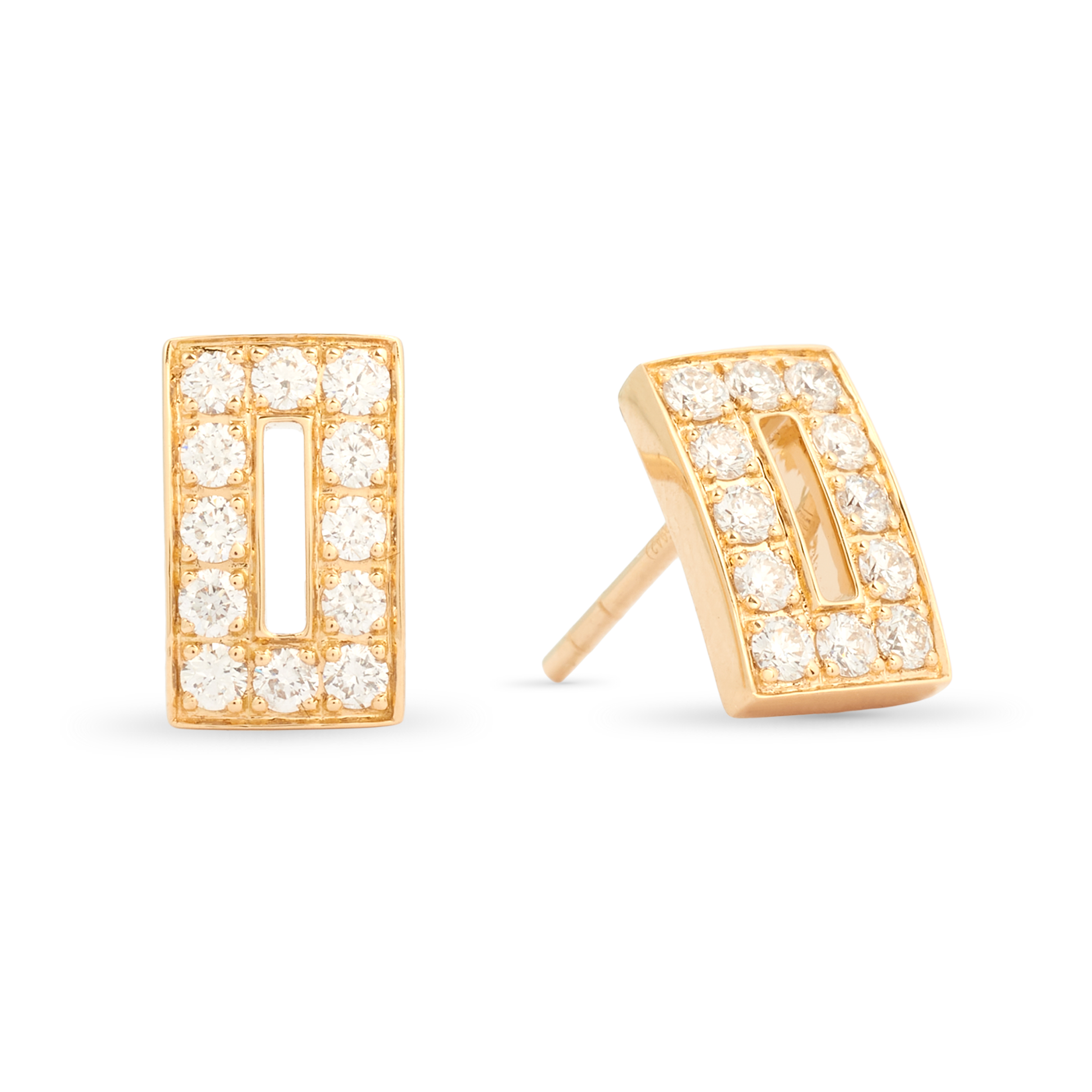 Pendientes oro amarillo 18K, diamante color GH, claridad SI 0.59 ct, 24 piedras, cierre presión