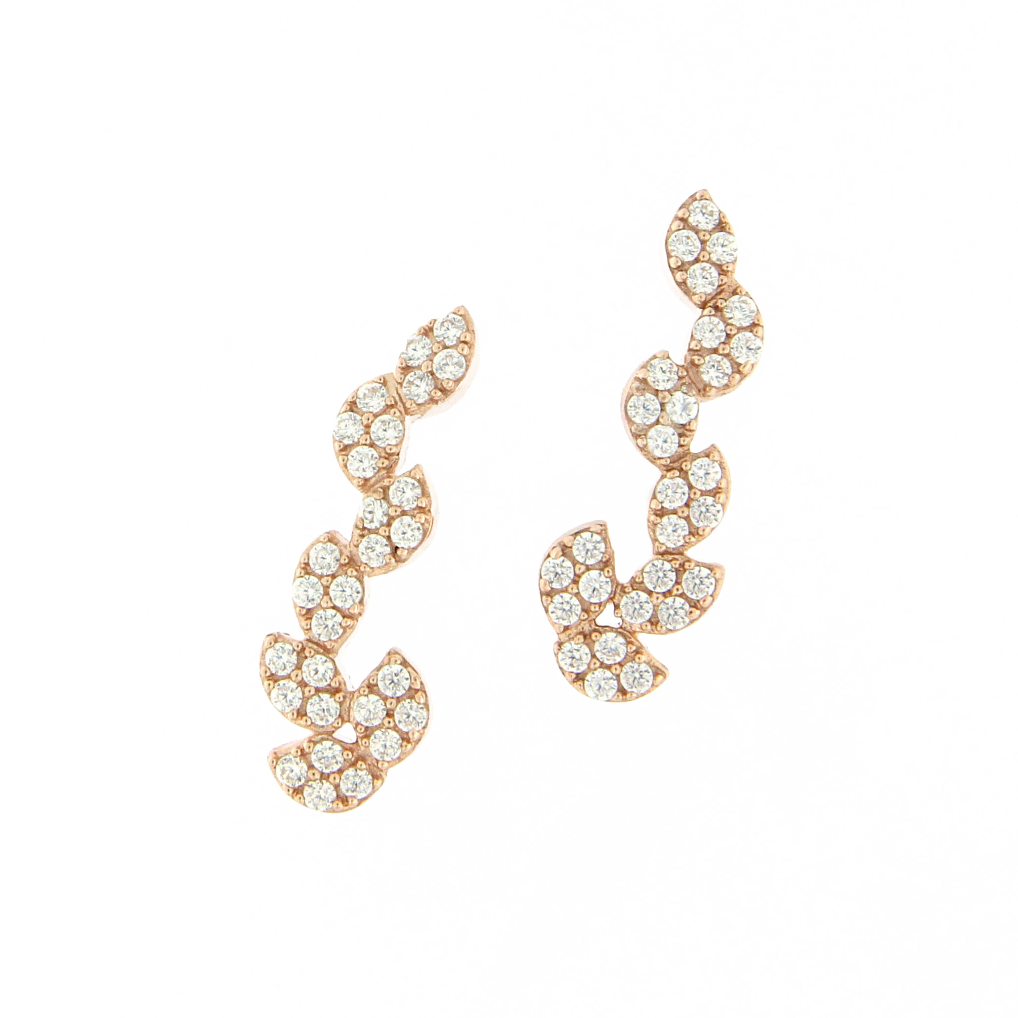 Pendientes oro rosa 18K, diamante color GH, claridad SI 0.48 ct, 56 piedras, cierre presión