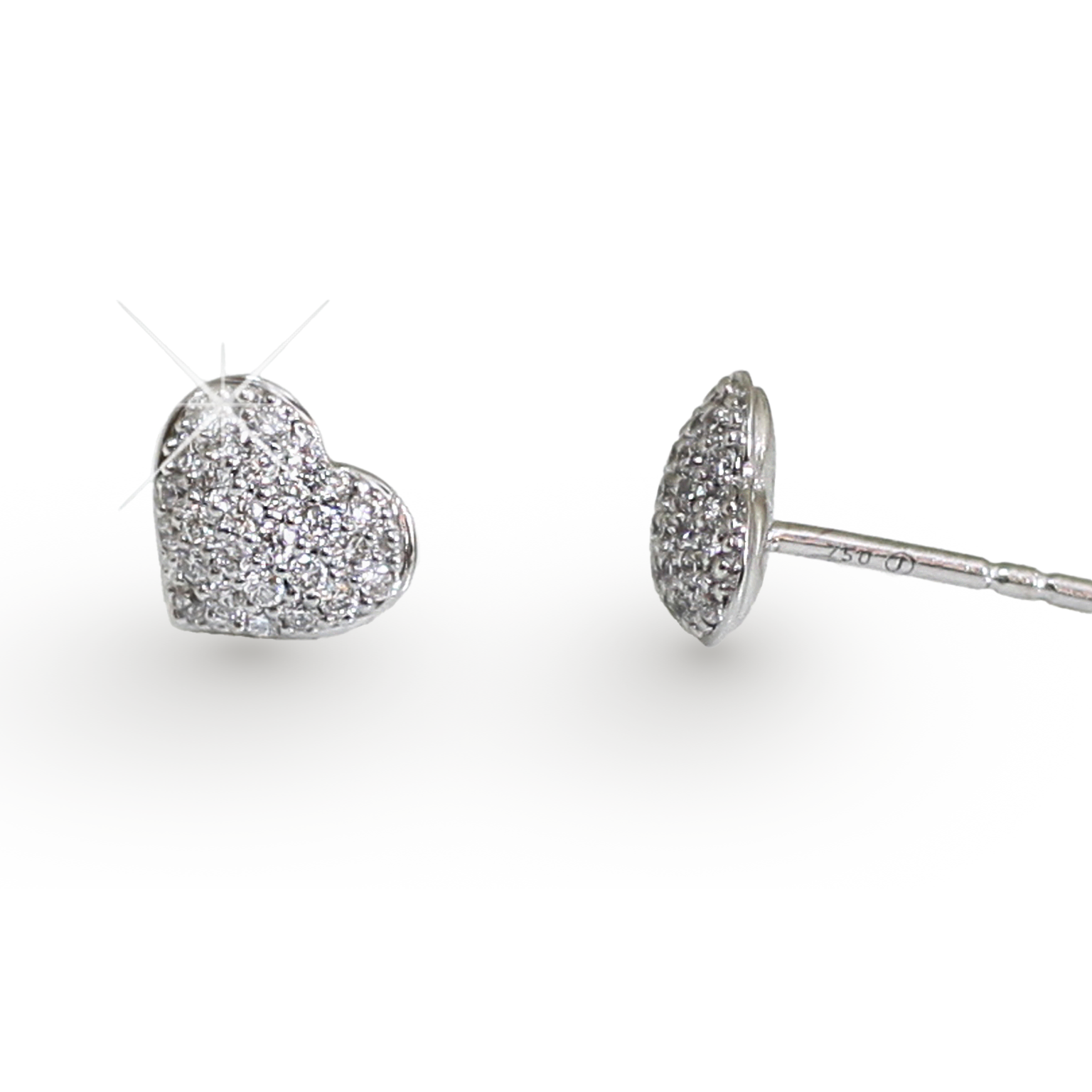 Pendientes oro blanco 18K, diamante color GH, claridad SI 0.42 ct, 54 piedras, cierre presión