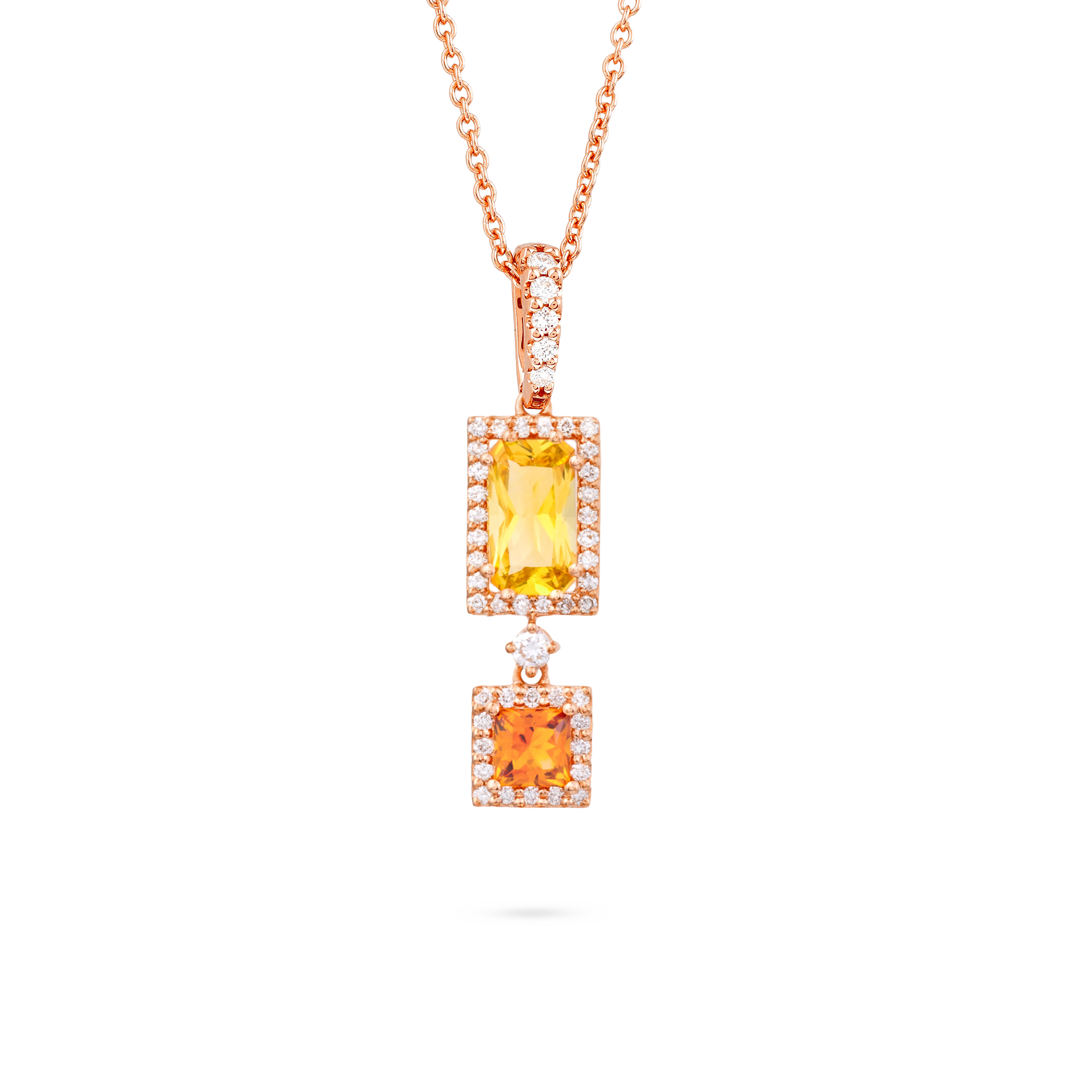 Colgante oro rosa 18K, diamante color GH, claridad SI 0.32 ct, citrino, 48 piedras, cadena rolo 45cm cierre mosqueton