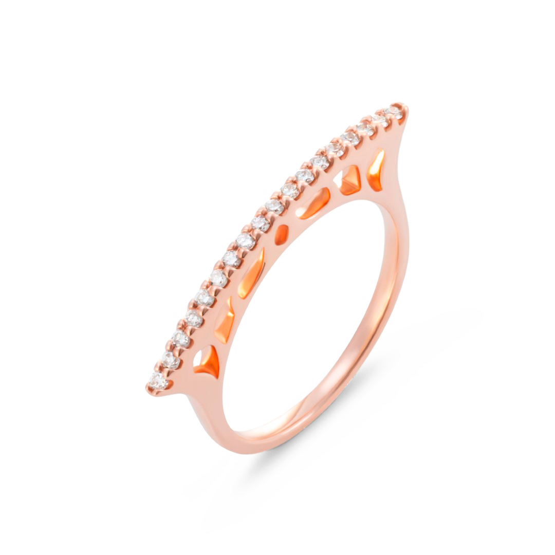 Sortija oro rosa 18K, diamante color GH, claridad SI 0.15 ct, 18 piedras