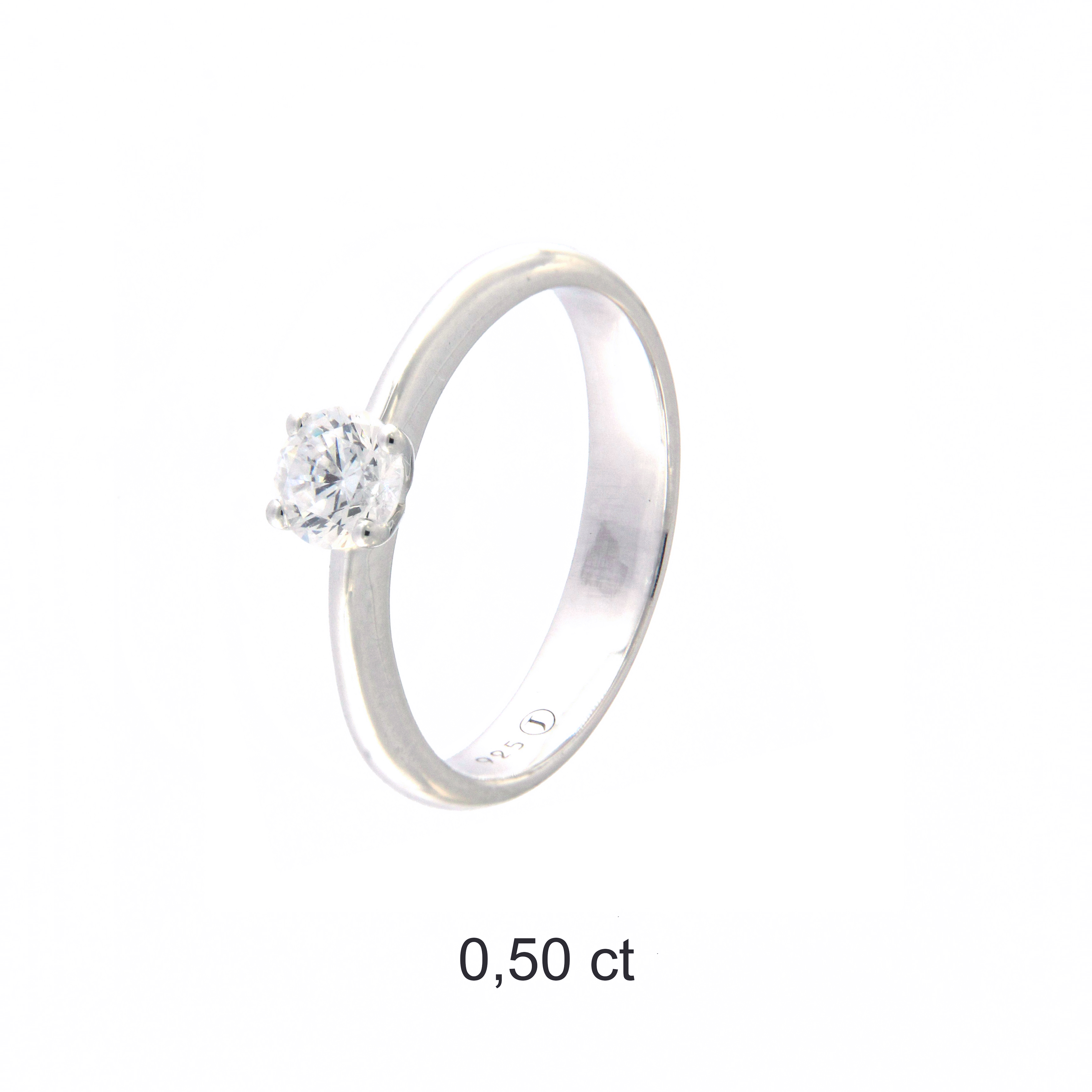 Sortija oro blanco 18K, diamante color GH, claridad SI 0.50 ct, 1 piedras