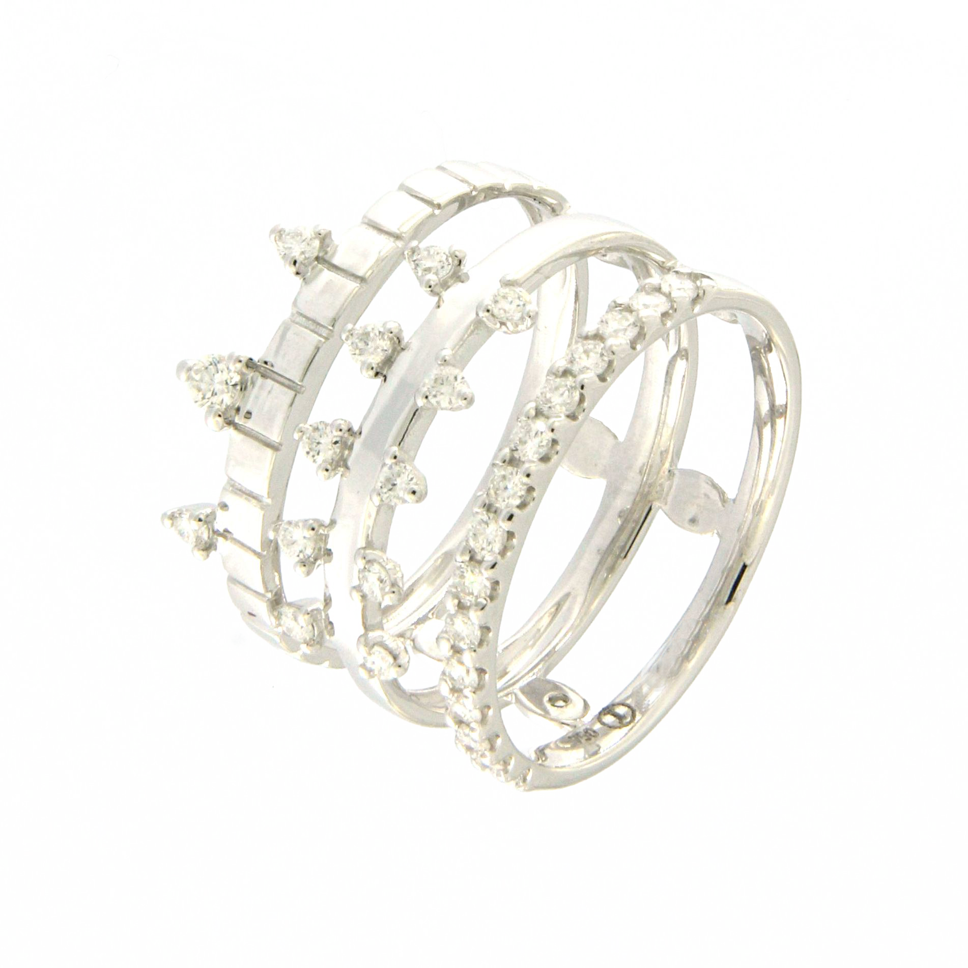 Sortija oro blanco 18K, diamante color GH, claridad SI 0.47 ct, 32 piedras