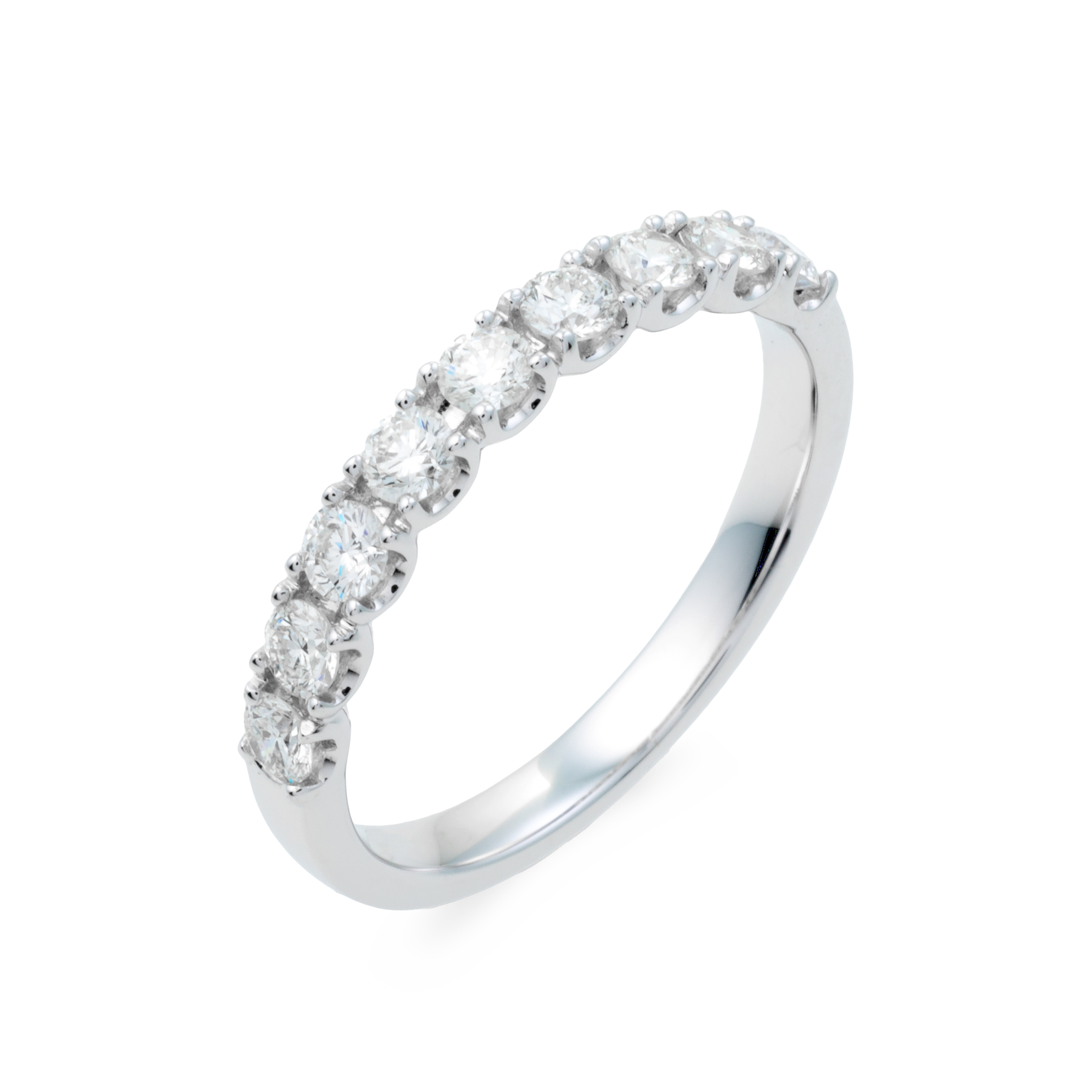 Sortija oro blanco 18K, diamante color GH, claridad SI 0.59 ct, 9 piedras